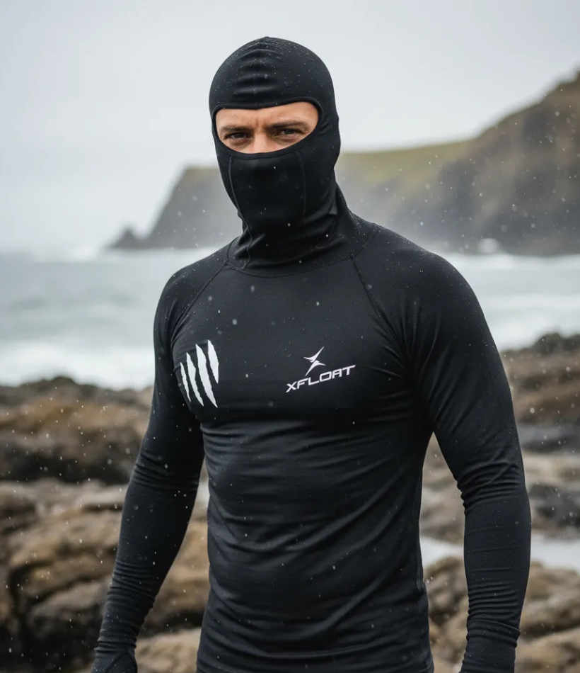 Camiseta Lycra UV Com Capuz Manga Longa XFloat - Preto